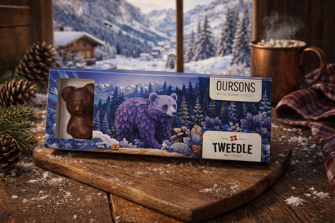 Guimauve Ourson à la myrtille, enrobé de chocolat au lait ou de chocolat noir